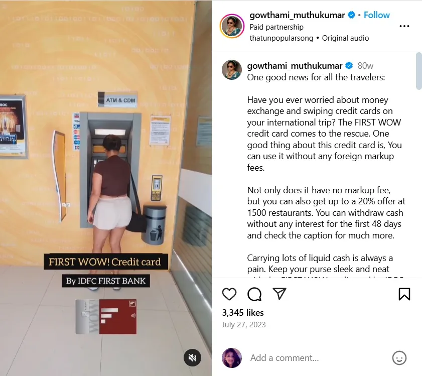 DRIM’s Proposal for FIRST WOW Credit Card from IDFC FIRST Bank - Influencers paid on every click