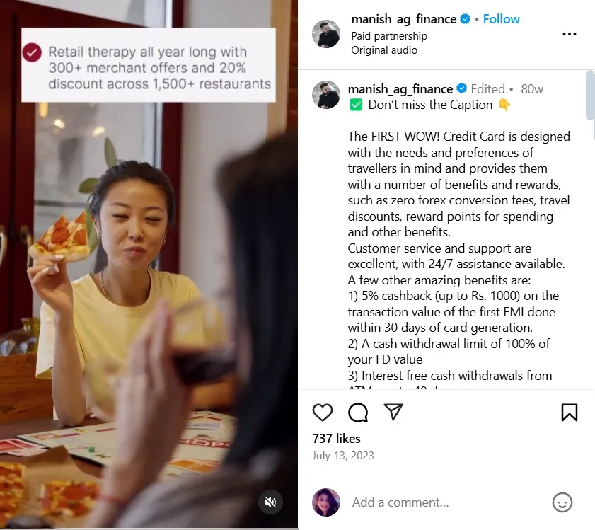 With over 250,000 micro-influencers at DRIM and award-winning success, we were confident in our ability to deliver and proposed to launch and build a performance influencer marketing channel for FIRST WOW Credit Card from IDFC FIRST Bank.