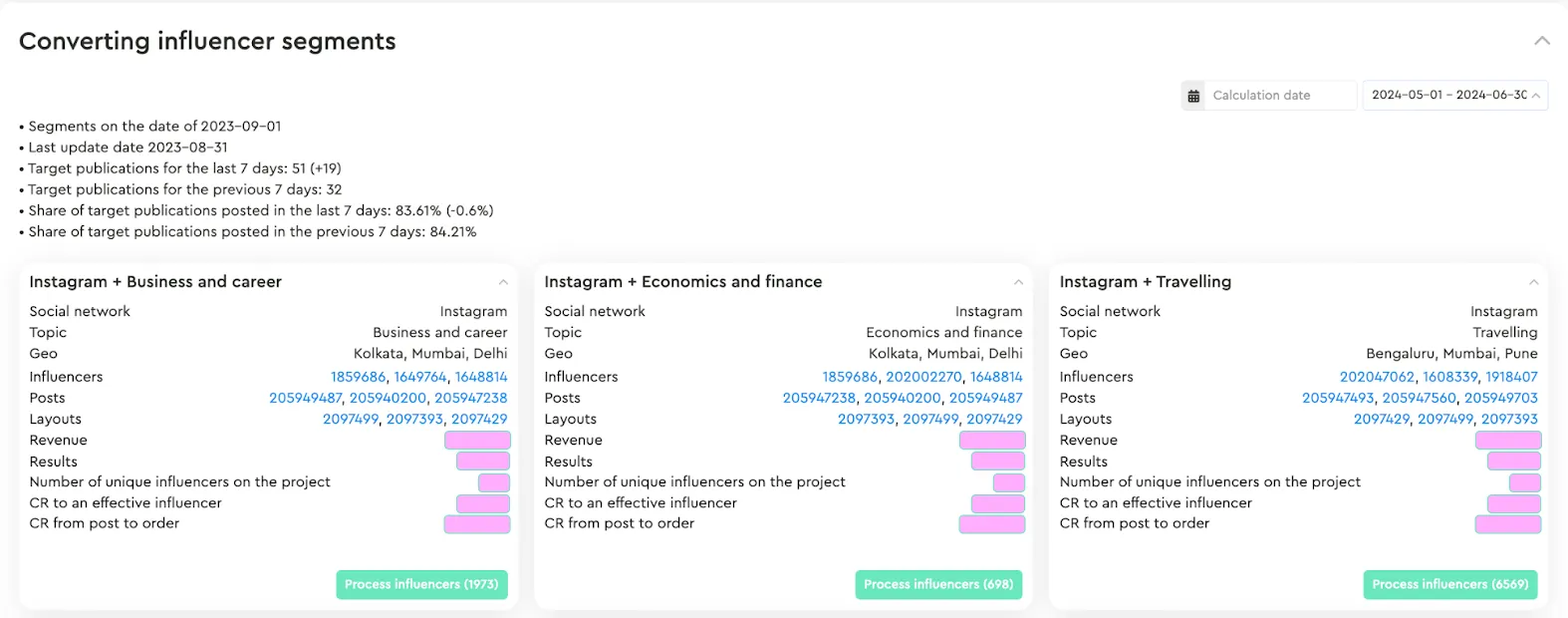 We already have extensive data on what type of influencers will convert in the industry and the number of publications needed to achieve a high-performance rate (expected results per 1000 views).