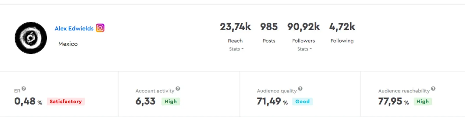 Em seguida, nosso sistema analítico corrigiu os tópicos, assim como selecionou outras localizações geográficas com maior conversão. Dentro da plataforma, desenvolvemos um sistema que coleta informações completas sobre cada influenciador em particular. Podemos ver seu desempenho em tópicos e projetos relacionados, o alcance de seu público, assim como a quantidade de respostas em cada rede social onde o influenciador mantém seu perfil. Essa análise é mais profunda que a análise média do mercado: as agências geralmente levam em consideração apenas a quantidade de cliques e curtidas que o influenciador obtém.