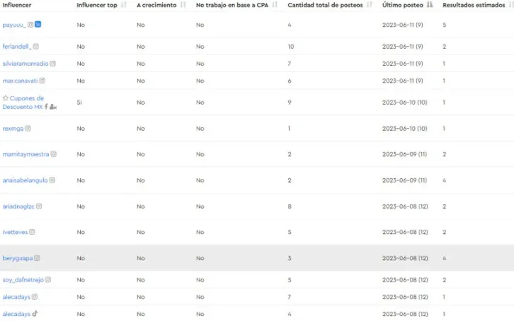 No início da campanha publicitária procuramos atrair para a campanha os microinfluenciadores principalmente das redes sociais Instagram e TikTok. Os tópicos principais foram os seguintes: estilo de vida, moda, crianças e família, viagens. A localização geográfica dos influenciadores estava focada nas 3 principais cidades do México: Cidade do México, Guadalajara e Monterrey. Com base na nossa experiência, são os pequenos influenciadores que tendem a gerar grande quantidade de vendas, devido ao alto nível de engajamento do seu público, à presença de conteúdo nativo nas publicações e à relação de confiança com os seus seguidores.