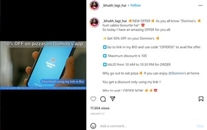El modelo CPA (coste por acción) en el marketing de influencers es un concepto relativamente nuevo en la India, por lo que plantea algunos retos. Pero, al dirigirnos a los micro- y nano-influencers, vemos que los resultados son excepcionales y que dichos influencers son aún más receptivos al modelo. El éxito de Domino's Pizza, respaldado por nuestra potente plataforma de aprendizaje automático, nos da la seguridad de que podemos utilizar eficazmente el CPA para generar más de 1.000.000 pedidos en el sector de la industria alimenticia.