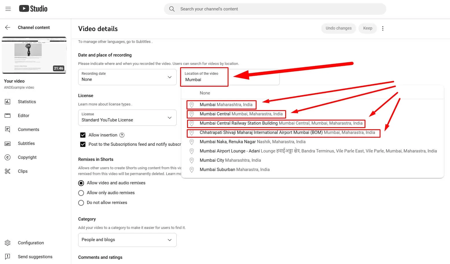 If you are a YouTube creator and you want your videos to be geo-locatable, there's a feature inside YouTube Studio that allows you to set a location for each of the videos in your channel.