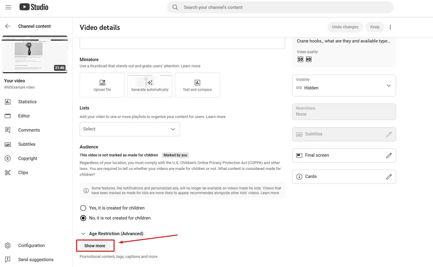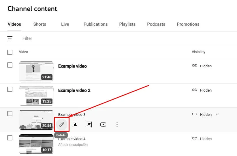 Edit the video you want by going to your YouTube Studio at studio.youtube.com